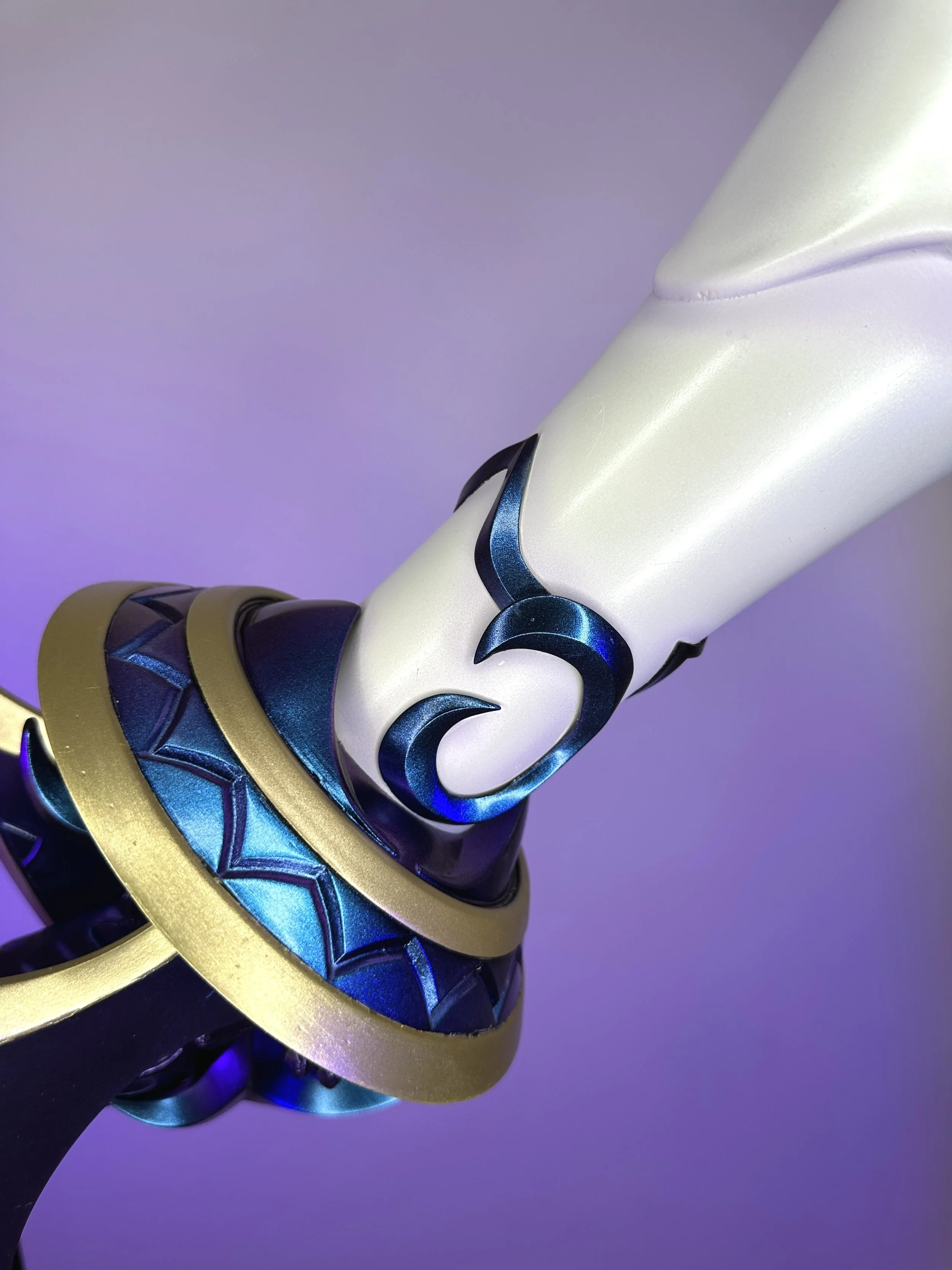 To save time, I purchased pre-made STL files for the guns and accessories, with a few additional accessories modelled by myself. Putting together the guns was a time-consuming process of many hours of sanding, but I was able to reward mysef at the end with this gorgeous blue-purple colour shift paint.