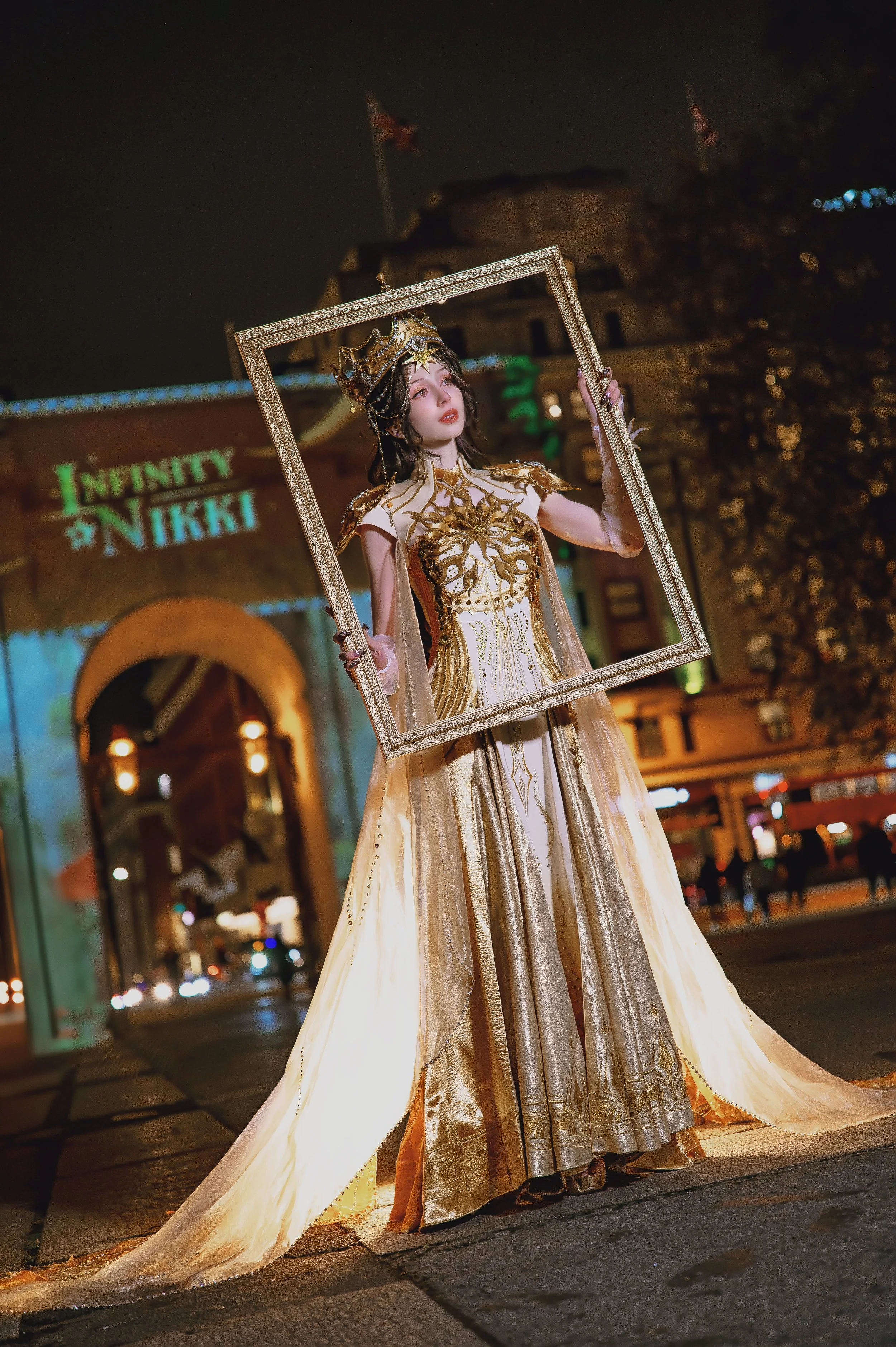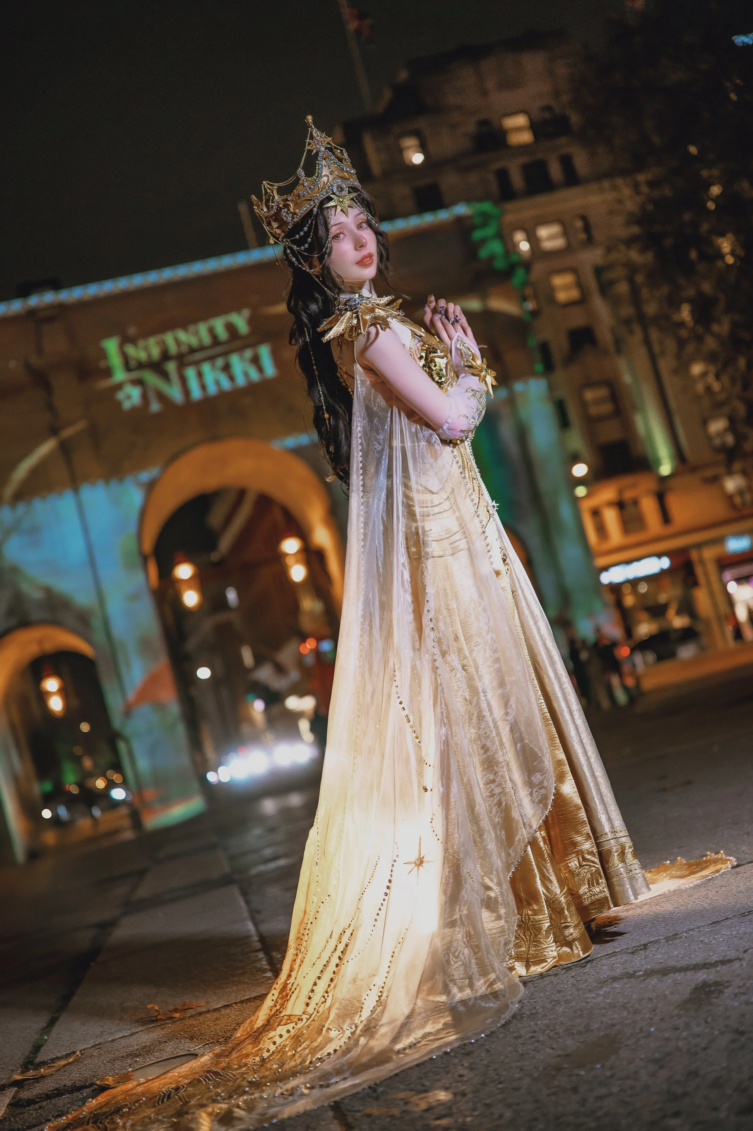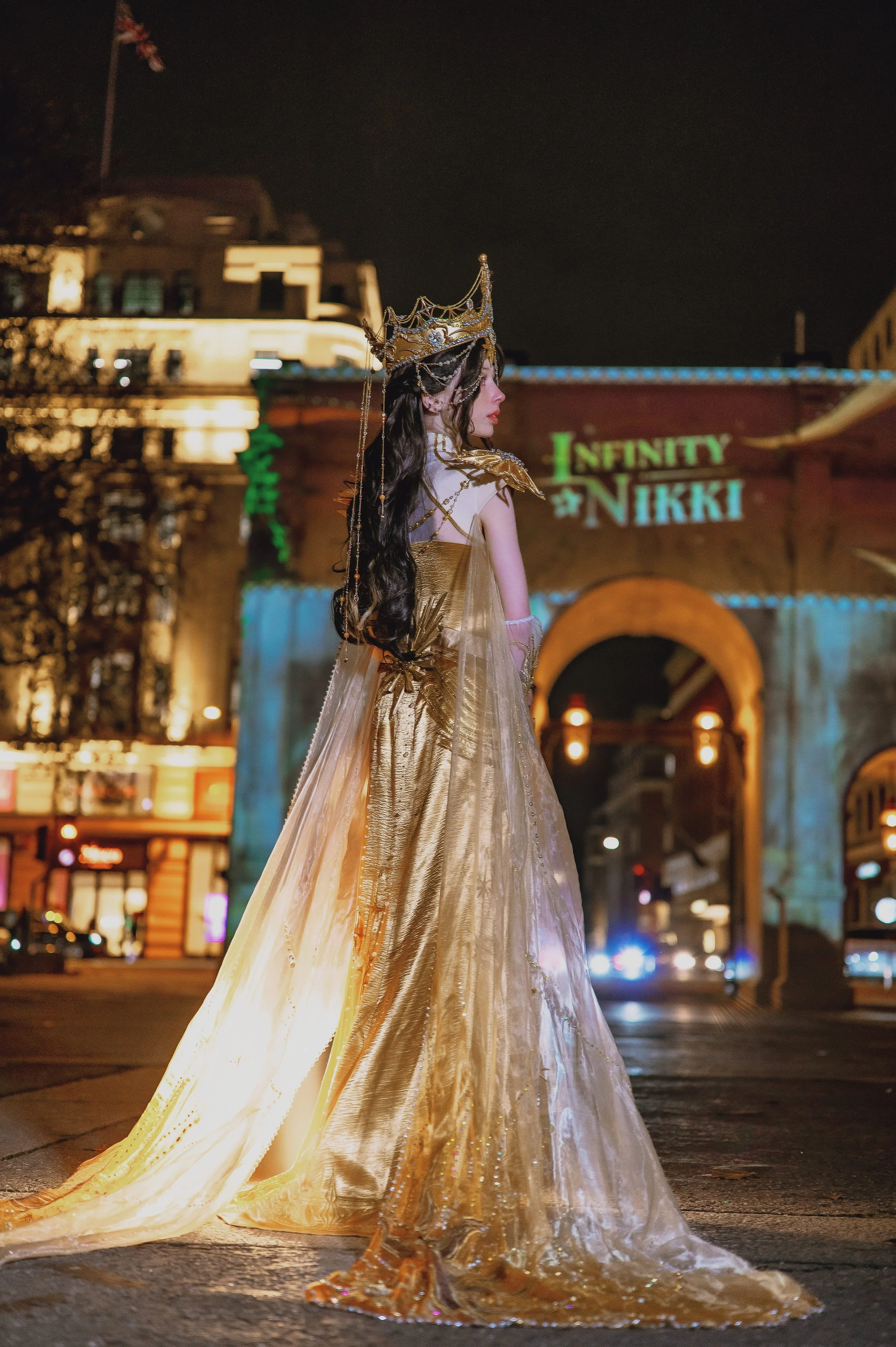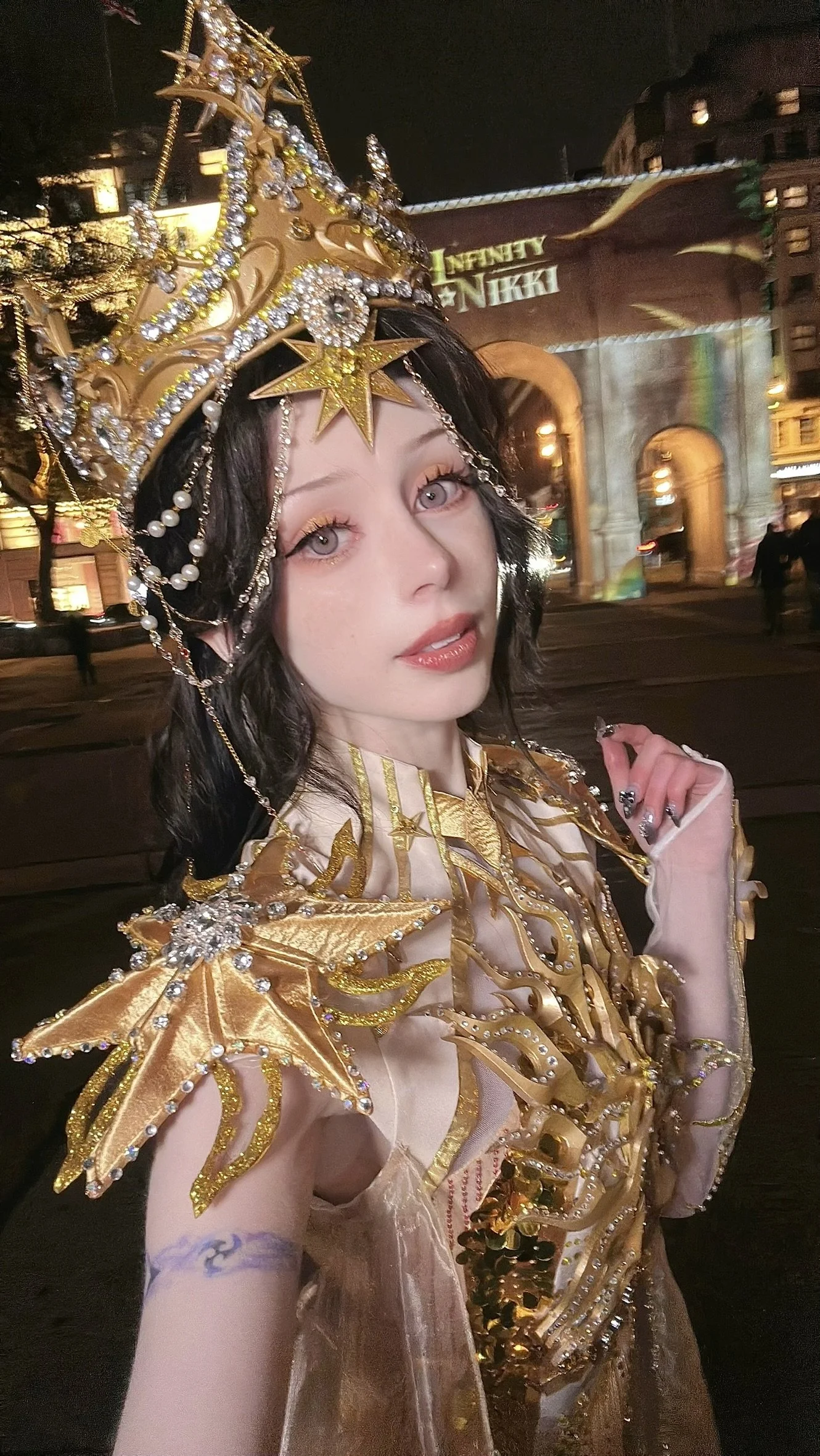 I wore this costume for Infinity Nikki to promote the 2.0 anniversary update at their Marble Arch light show event in London.